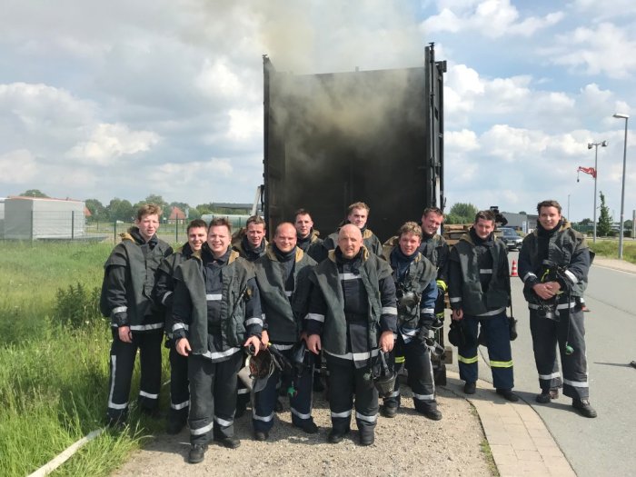 Insgesamt zwölf Atemschutzgeräteträger der Feuerwehr Emsbüren haben zusammen mit weiteren Atemschutzgeräteträgern der Feuerwehr Salzbergen am letzten Freitag (31.05.2019) und Samstag (01.06.2019) an einer Heißbrandausbildung in einem Brandcontainer bei der Firma DELTA Safety & Protection GmbH in Sulingen teilgenommen.