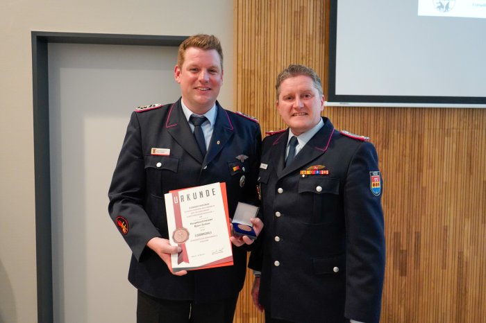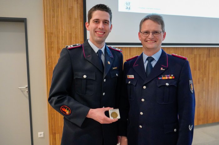 Überreichung der Florianmedaille der Niedersächsischen Jugendfeuerwehr e.V. Kreisjugendfeuerwehrwart Klaus Smit: