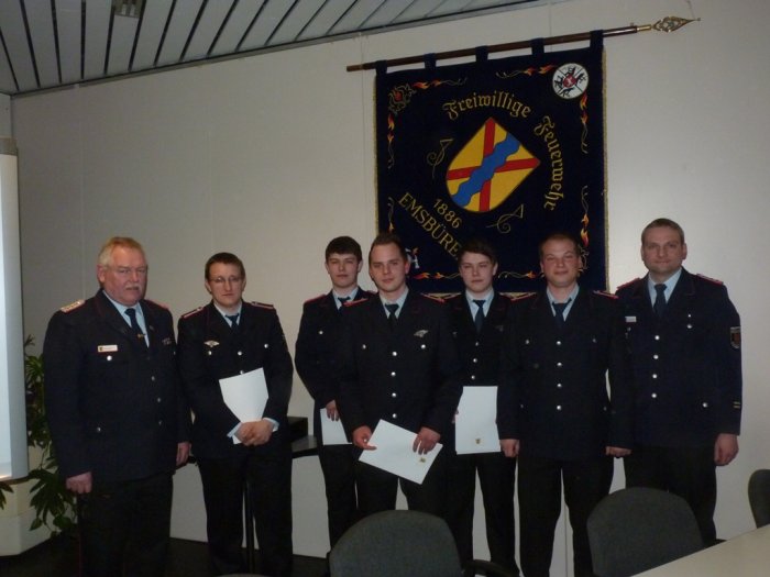 Vom Feuerwehrmann-Anwärter zum Feuerwehrmann: Jenny Kley, Luc Scheffer, Lukas Janning, Katharina Kock (fehlend) |