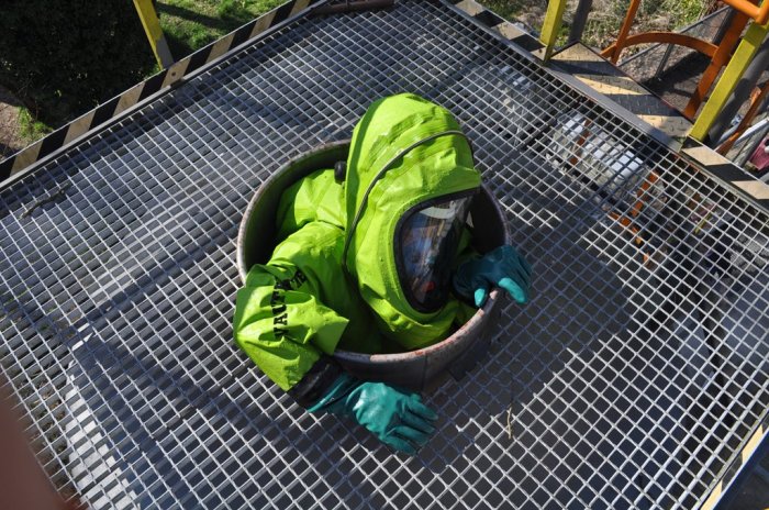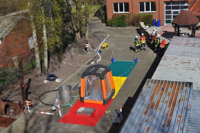 In diesem Jahr nutzte man dafür die Übungsanlage für Gefahrguteinsätze in Lingen. Knapp 50 Einsatzkräfte haben sich dazu eingefunden. Als Szenario wurde eine Leckage in einem Tankkessel eines Güterzuges angenommen. Zunächst wurde in zwei Gruppen sowohl ein Zelt für die Einkleidung in Chemikalienschutzanzügen als auch ein Dekontaminationsplatz errichtet.