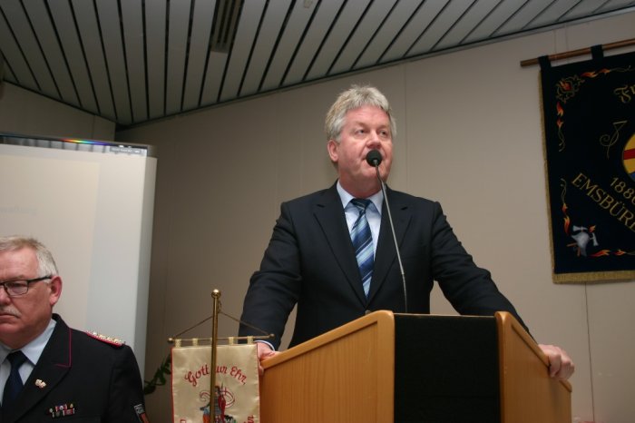 In den anschließenden Grußworten dankte Bürgermeister Bernhard Overberg, auch im Namen von Rat und Verwaltung der Gemeinde Emsbüren, allen Kameradinnen und Kameraden der Feuerwehr für ihren zuverlässigen Einsatz. Besonderer Dank galt jedoch Werner Kley, der das letzte Mal als Gemeindebrandmeister die Jahresdienstversammlung der Feuerwehr leitete. Seine herausragenden Dienste für das Emsbürener Feuerwehrwesen in den vergangenen 16 Jahren als Gemeindebrandmeister werden im Rahmen einer offiziellen Feierstunde entsprechend gewürdigt, versprach Overberg. Die vielfältigen Aufgaben, die in den Jahresberichten der einzelnen Abteilungen vorgetragen wurden, seien wieder ein beeindruckendes Zeugnis für das Geleistete. Das Jahr 2016 sei, so Overberg, ein Besonderes. So rückt der Neubau des Feuerwehrgerätehauses in greifbarer Nähe. In den vergangenen Wochen und Monaten seien Rat, Verwaltung und Feuerwehr dem Neubau große Schritte näher gekommen. Ebenso erfreut zeigte sich der Bürgermeister über die in Kürze stattfindende Einweihung des neuen Einsatzleitwagens.