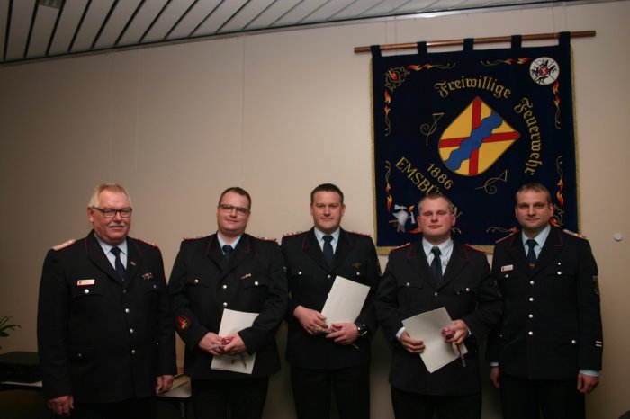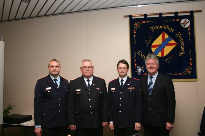 In seinem einführenden Jahresbericht blickte Kley auf ein einsatzmäßig ruhiges Jahr 2015 zurück, an dessen Ende insgesamt 94 Einsätze zu Buche schlugen. Die Einsätze unterteilen sich wiederrum in 35 Brandeinsätze und 59 Hilfeleistungen. Besonders hob Kley den Strohbrand im Lescheder Feld, den Bootsbrand auf der Ems, die zwei Kellerbrände und den Wohnhausbrand in Elbergen hervor. Aber auch zwei Unwetterlagen im März und Juli mit zahlreichen Sturmeinsätzen waren zu bewältigen. Erfreulicherweise wurde die Feuerwehr Emsbüren im letzten Jahr von schwerwiegenden Verkehrsunfällen verschont. Leider waren dennoch bei den Einsätzen wieder Tote und Schwerverletzte zu beklagen. Diese Einsätze forderten das ganze Können der Feuerwehrkameradinnen- und kameraden. Insgesamt, so resümierte Kley, arbeitete die Feuerwehr im Jahr 2015 2.123 Einsatzstunden ab. Dieses Einsatzspektrum sei nur durch eine stetige Aus- und Fortbildung zu bewältigen. So fielen im vergangenen Jahr an 26 Übungsabenden weitere 1.994 Stunden Übungsdienst an. Auch die Ausbildungen in den Sondergruppen, wie der Höhenrettung, dem Gefahrgutzug oder der TEL kamen mit 525 Stunden nicht zu kurz. An weiteren 350 Stunden wurden technische Dienste geleistet. An 31 Lehrgängen zur Aus- und Weiterbildung nahmen Kameradinnen und Kameraden sowohl auf Landkreisebene als auch an der Nds. Akademie für Brand- und Katastrophenschutz teil. Darüber hinaus seien, so Kley, weitere Arbeitsstunden für die Umrüstung vom Analog- zum Digitalfunk geleistet worden. Ebenso seien die Renovierungsarbeiten am Spritzenhaus in Eigenleistung erfolgt. Hier gilt auch der Gemeinde Emsbüren ein Dank, die die Materialien für den Umbau finanzierte. Auf zahlreichen gemeindlichen Veranstaltungen sei man präsent gewesen, wie beispielsweise das Pfarrfest oder der Herzogmarkt. Auch personell hat sich im vergangenen Jahr etwas getan, so ist Tobias Flödder aus der Feuerwehr ausgetreten. Im Jahr 2015 gehörten der Feuerwehr Emsbüren insgesamt 194 Mitglieder an, die sich in 73 Mitglieder der Einsatzabteilung, 15 Mitglieder der Kinderfeuerwehr, 29 Mitglieder in der Jugendfeuerwehr, 40 Mitglieder im Musikzug, 34 Mitglieder in der Alters- und Ehrenabteilung sowie 3 Betreuerinnen der Kinderfeuerwehr aufteilen. Besonders erfreut zeigte sich Kley über die Ersatzbeschaffung für den Einsatzleitwagen, die in Kürze abgeholt und eingeweiht werden kann. Abschließend bedankte sich Werner Kley bei allen Kameradinnen und Kameraden für ihren Einsatz. Weiterhin galt sein Dank der Verwaltung und dem Rat der Gemeinde Emsbüren.